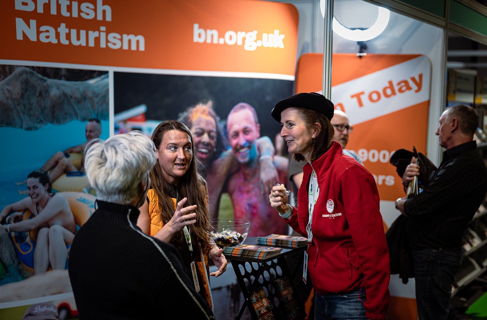 It was a very busy week for British Naturism at the NEC, Birmingham where we seized the opportunity to speak to the 100,000 visitors to the Caravan, Camping and Motorhome Show 2024. Our team of seven volunteer ambassadors engaged approximately 1440 guests in meaningful conversation, over the six days, distributed around 2400 Guides to Naturism, and 500 'Challenge 60' Log Books.